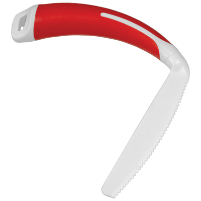 Ergonomisch gebogen mes met handgreep in rode kleur om zelfstandig te kunnen eten.