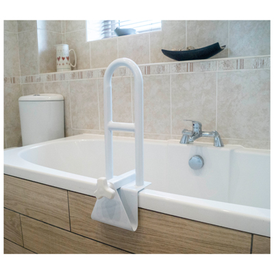 De verwijderbare badgreep is ontworpen om u extra steun te geven bij het in- en uitstappen van uw bad. Dit product klemt zich veilig vast aan de zijkant van uw bad, gemakkelijk en zonder gereedschap. De grijpstang is volledig verwijderbaar voor gebruik onderweg en kan worden opgeborgen wanneer hij niet wordt gebruikt.