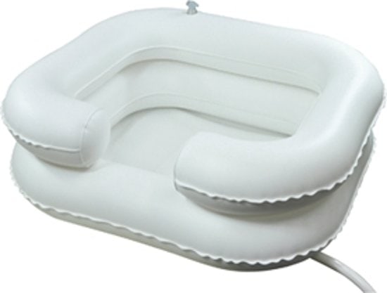 Het stevige, opblaasbare bassin van Aidapt is ontworpen om draagbaar baden en haren wassen te bieden. Het is met name geschikt voor mensen met beperkte mobiliteit en maakt ondersteunde haarwassing in een bed mogelijk, maar is ook ideaal voor het hele gezin om te gebruiken tijdens het kamperen. Met twee opblaasbare kamers, waarvanéén met een uitsparing zodat gebruikers comfortabel hun nek tegen het bassin kunnen laten rusten om hun haar te wassen en uit te spoelen. Het draagbare, opblaasbare bassin beschikt ook over een bevestigde 1 meter lange afvoerbuis en een slim ontworpen afvoergat met bevestigde stop. 11 liter capaciteit. Latexvrije vinylconstructie.