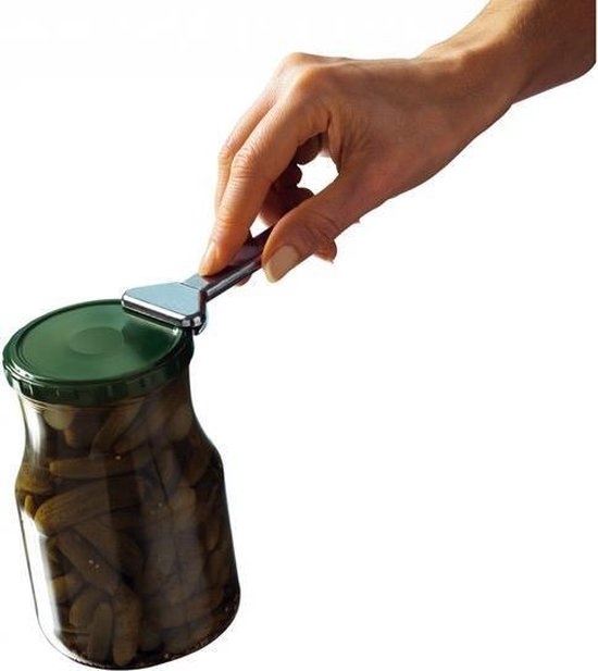 De originele s werelds makkelijkste pottenopener.Met een kleine inspanning laat u het vacuüm uit depot ontsnappen waardoor het deksel gemakkelijkte openen is. Met deze metalen uitvoering zijn ookflessen met kroonkurken te openen.
