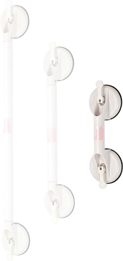 Geen schroeven geen gaten. Met de sterke zuignappen kannen beze grepen makkelijk op een glad oppervlaket vastgemaakt worden. De vacuum hendel maakt een zuigkracht to 70 kg mogelijk. Leverbaar in 3 maten: 32,5 / 58 / 88 cm.