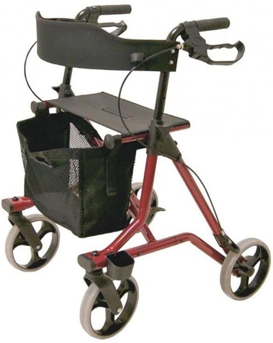 - Deze rollator wordt geleverd inclusief rugband, stokhouder, en rollatortas.