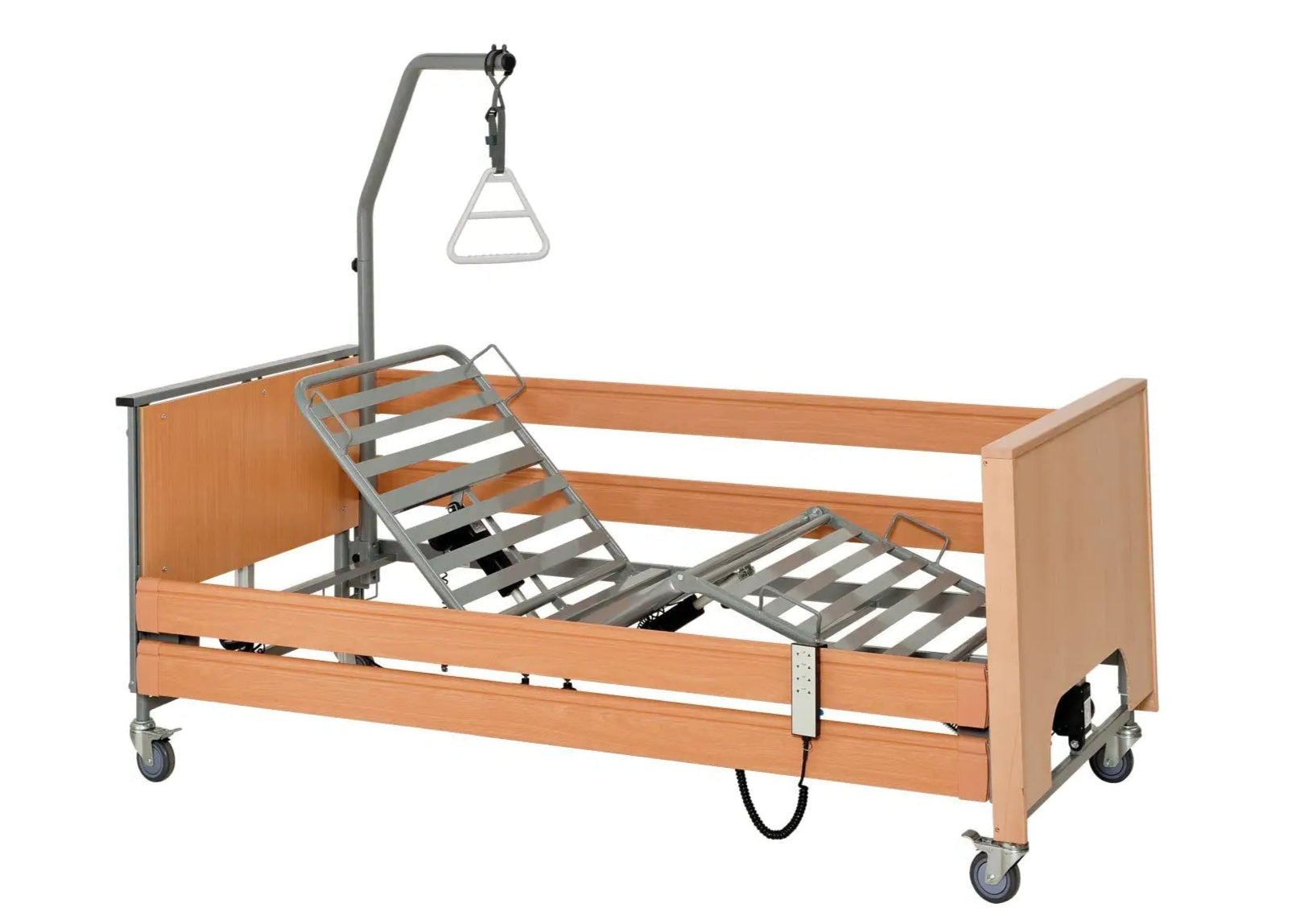 Het Ecofit S Plus zorgbed is de ideale keuze voor thuiszorg, dankzij de uitstekende prijs-kwaliteitverhouding en de Europese certificering. Dit Hoog-Laag bed voldoet aan de strikte Europese normen (IEC 60601-2-52), wat het ook geschikt maakt voor gebruik in verpleeghuizen en zorginstellingen. Gratis toebehoren voor extra gemak Bij het Ecofit S Plus zorgbed ontvangt u gratis een bedpapagaai en een afstandsbediening. De bedpapagaai is een essentieel hulpmiddel dat het in- en uitstappen uit het bed vergemakkelijkt en het draaien in het bed makkelijker en veiliger maakt. De afstandsbediening is gebruiksvriendelijk en uitgerust met alle benodigde functies om het bed optimaal te bedienen. Veilig en stevig Dit zorgbed biedt plaats aan matrassen met een maximale hoogte van 20 cm. Dankzij de matrasbeugels blijft uw matras stevig op zijn plek, zodat het niet uit het bed kan vallen. Dit zorgt voor extra veiligheid en comfort, zodat u altijd met vertrouwen kunt slapen. Kwaliteit en betrouwbaarheid De Ecofit S Plus voldoet niet alleen aan de hoogste veiligheidsnormen, maar wordt ook geleverd met een garantie van 3 jaar op het houtwerk en frame, en 5 jaar op de motor. Dit biedt u gemoedsrust en zekerheid over de lange levensduur van het zorgbed. Waarom kiezen voor Ecofit S Plus? Europese Certificering: Voldoet aan de strenge Europese normen voor zorgbedden (IEC 60601-2-52). Gratis Toebehoren: Bedpapagaai en afstandsbediening worden standaard meegeleverd. Veiligheid en Comfort: Matrasbeugels houden uw matras stevig op zijn plaats. Uitstekende Garantie: 3 jaar garantie op houtwerk en frame, 5 jaar op de motor.
