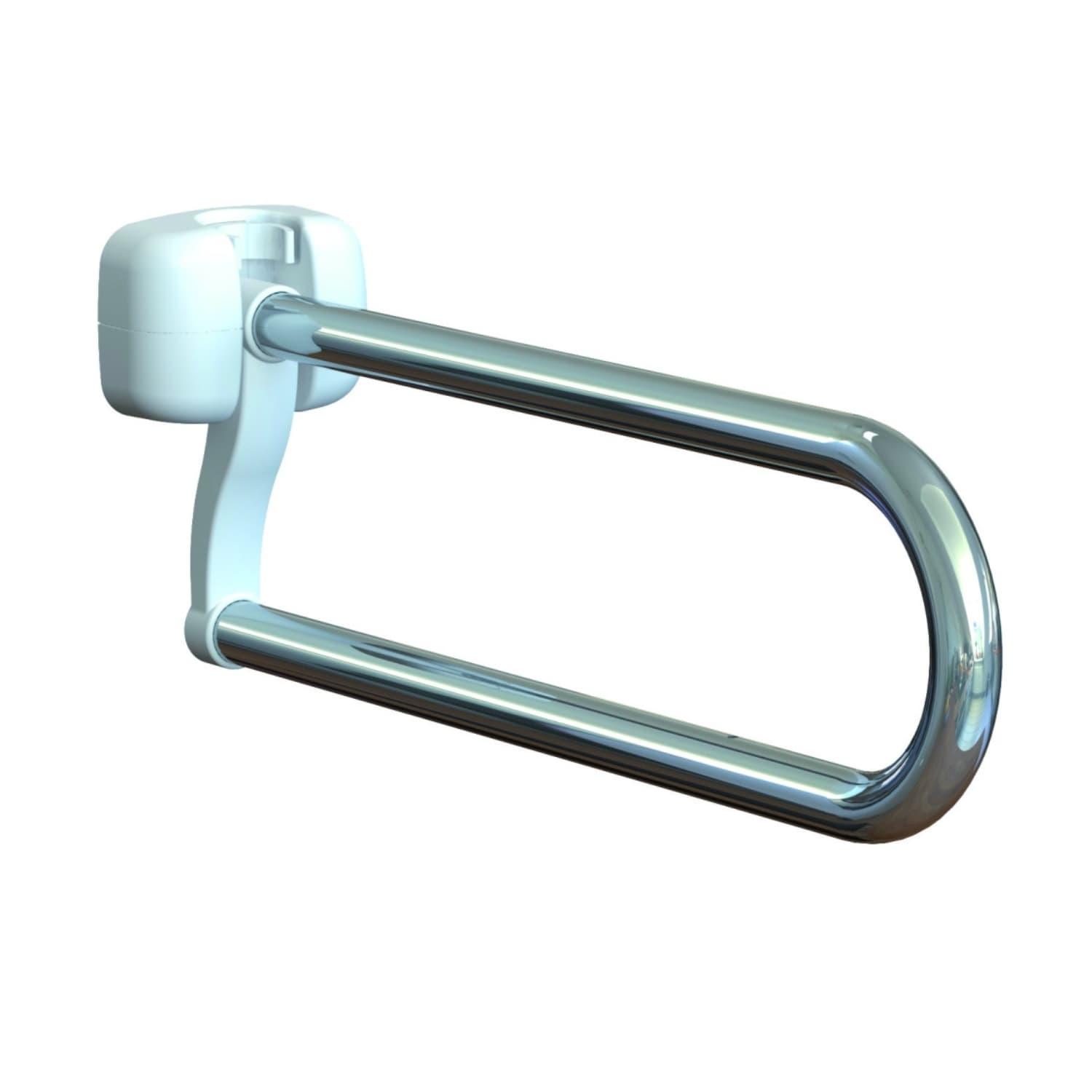Opklapbare toiletbeugel voor extra ondersteuning rondom het toilet. Gemaakt van roestvrij staal. In opgeklapte verticale stand vergrendelt de beugel. Wordt op vier punten aan de muur bevestigd. Voorzien van kunststof cover voor een verborgen bevestiging. Diameter buis 3,2 cm. Montagemateriaal niet inbegrepen.