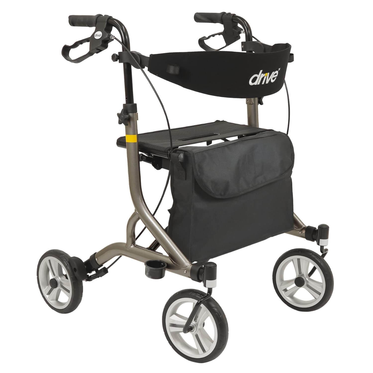 Als u op zoek bent naar een betrouwbare metgezel om uw mobiliteit te ondersteunen, dan is de rollator Nitro SL de perfecte keuze. Deze lichtgewicht rollator is ontworpen met uw comfort en gemak in gedachten. Met een gewicht van slechts 5,5 kg is de Nitro SL uitzonderlijk licht, wat het eenvoudig maakt om hem mee te nemen waar u ook heen gaat. Het gebruiksvriendelijke opvouwmechanisme zorgt ervoor dat u de rollator moeiteloos kunt opbergen en vervoeren, zonder al te veel inspanning te hoeven leveren. Hierdoor houdt u meer energie over om te genieten van uw dag en de wereld om u heen te verkennen. Kenmerken van de Rollator Nitro SL: Lichtgewicht ontwerp: Weegt slechts 5,5 kg, waardoor hij gemakkelijk te tillen en te vervoeren is. Eenvoudig opvouwmechanisme: Gemakkelijk op te vouwen voor transport en opslag, perfect voor onderweg. Rugleuning: Voorzien van een rugleuning voor extra comfort en ondersteuning tijdens het zitten. Ergonomische handvatten: Handvatten zijn ergonomisch gevormd en in hoogte verstelbaar voor optimaal comfort. Stijlvol ontwerp: Modern en aantrekkelijk ontwerp dat bij elke stijl past. Eenvoudig in gebruik: Uitstekende manoeuvreerbaarheid, waardoor het gemakkelijk is om door nauwe ruimtes te navigeren. De rollator Nitro SuperLight is de beste keuze De rollator Nitro SL van Drive Devilbiss Healthcare is een uniek product dankzij het lage gewicht van de rollator voor een uiterst scherpe prijs. Dankzij de bekendheid van merk geniet u niet enkel een betrouwbare rollator, maar ook een uitermate hoge service waarde en onderdelen garantie voor een langere levensduur van de rollator. Vergelijkbare modellen, die beweren beter te zijn kunnen hier niet in mee gaan waardoor de rollator Nitro SuperLight de beste keuze is en blijft voor u als gebruiker. Geniet van elk avontuur met de rollator Nitro SL Dankzij het innovatieve ontwerp van de Nitro SL wordt het gemakkelijker dan ooit om nieuwe plekken te ontdekken en deel te nemen aan activiteiten die u leuk vindt. Of u nu een wandeling door het park maakt, boodschappen doet, of vrienden bezoekt, deze rollator biedt de ondersteuning die u nodig heeft om vol vertrouwen te bewegen. De rollator helpt u niet alleen om uw onafhankelijkheid te behouden, maar moedigt u ook aan om uw sociale kring uit te breiden en actief te blijven. Kom tot rust met de comfortabele zitting Bij langere wandelingen kan het soms nodig zijn om even te pauzeren en tot rust te komen. De rollator Nitro SL is voorzien van een brede zitting van 46 cm en een comfortabele rugleuning, waardoor u altijd een comfortabele plek heeft om te zitten wanneer dat nodig is. Deze zitting is ontworpen om maximale ondersteuning en comfort te bieden, zodat u kunt ontspannen en nieuwe energie kunt opdoen voordat u uw wandeling voortzet. Op zoek naar een andere lichtgewicht rollator? Bekijk ze hier. Uitmuntende functionaliteit en ondersteuning De rollator Nitro SL is niet alleen licht en draagbaar, maar ook uitgerust met diverse functies die uw dagelijkse leven gemakkelijker maken. Het frame is robuust en duurzaam, ontworpen om lang mee te gaan en u betrouwbare ondersteuning te bieden. De handvatten zijn ergonomisch gevormd en in hoogte verstelbaar, zodat u altijd de perfecte houding kunt aannemen tijdens het lopen. Daarnaast zorgen de grote wielen voor een soepele en stabiele rit, zelfs op oneffen terrein.