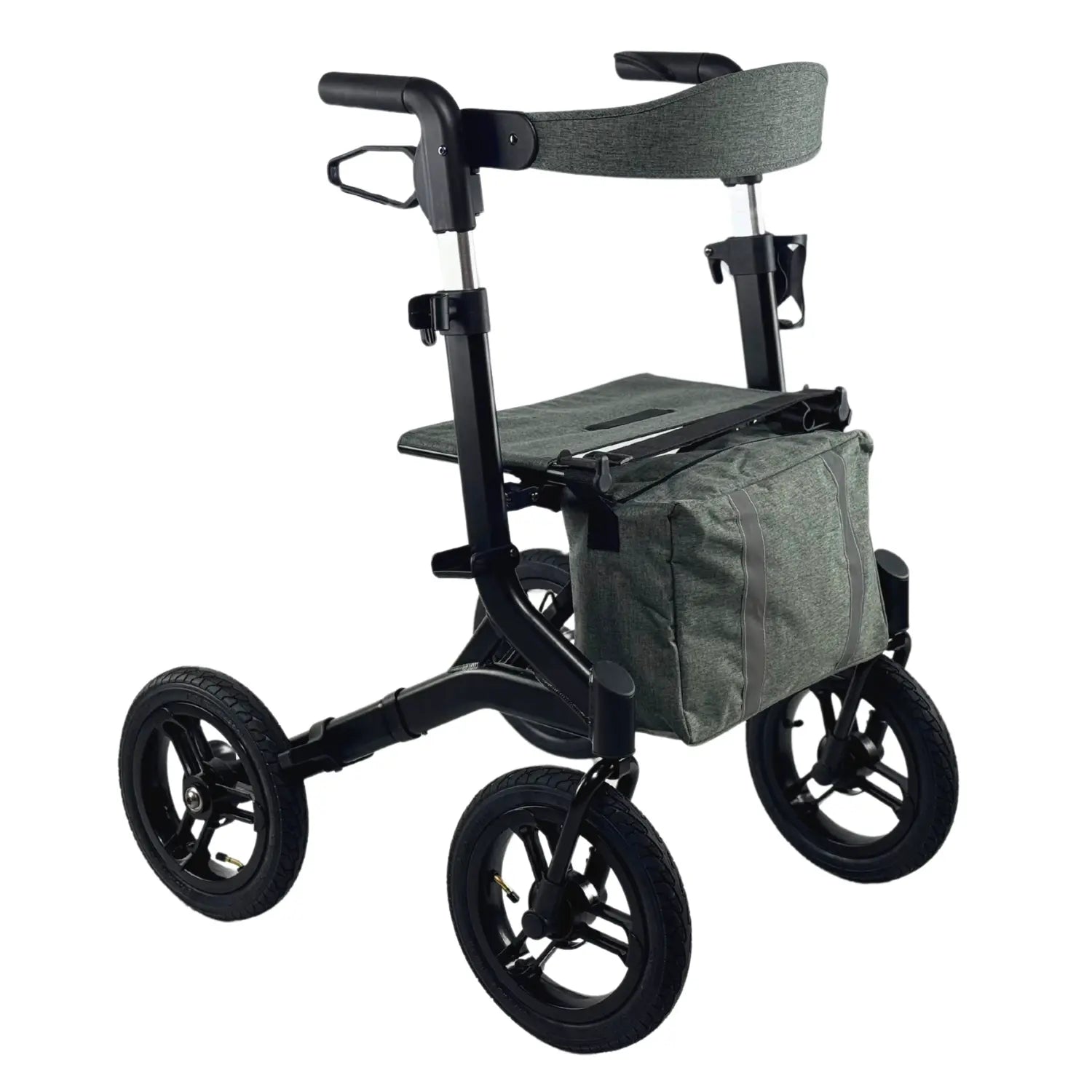 De Plaza Outdoor Rollator is speciaal ontworpen voor mensen die graag actief blijven en volop willen genieten van hun vrijheid buitenshuis. Deze rollator onderscheidt zich door zijn grote wielen met luchtbanden, die niet alleen zorgen voor een soepele rit, maar ook uitstekende schokabsorptie bieden op oneffen terrein. Of u nu door de stad wandelt, een park bezoekt of over onverharde paden loopt– deze rollator staat stevig en comfortabel aan uw zijde. Met een gewicht van slechts 8,2 kg is de Plaza Outdoor licht en makkelijk hanteerbaar, wat het tillen in de auto of het meenemen op reis bijzonder eenvoudig maakt. Ondanks het lage gewicht is hij bijzonder robuust en geschikt voor gebruikers tot 136 kg, dankzij het stevige frame van hoogwaardig aluminium. Bovendien is hij volledig opvouwbaar, waardoor u hem probleemloos kunt opbergen of vervoeren wanneer hij niet in gebruik is. Wat deze rollator echt uniek maakt, is de uitgebreide standaarduitrusting. Bij aankoop ontvangt u direct eenpraktische stokhouder, een drinkbekerhouder, een comfortabele rugband en een ruime tas waarin u al uw persoonlijke spullen veilig kunt meenemen. Dit maakt de Plaza Outdoor niet alleen een mobiliteitshulpmiddel, maar een echte allround metgezel voor buitengebruik. Waarom kiezen voor de rollator Plaza Outdoor? Naast zijn technische kwaliteiten biedt deze rollator ook een gevoel van zekerheid, vrijheid en onafhankelijkheid. Hij is ontworpen met oog voor detail en gebruiksgemak, en combineert comfort met een moderne, strakke uitstraling. De luchtbanden maken het verschil bij langere wandelingen,en het inklapbare ontwerp garandeert flexibiliteit in het dagelijks leven.