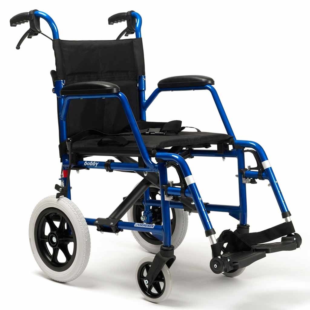 Transportrolstoelen zijn ideaal voor korte afstanden (winkelcentra, musea, vliegvelden). Door de kleine wielen zijn de rolstoelen erg wendbaar en licht van gewicht. Echter, doordat de wielen van transportstoelen zo klein – en vaak hard – zijn, worden ze vaak alleen op gladde ondergronden gebruikt. De Bobby 12 is daarom uitgevoerd met 12″ massieve banden. Hierdoor blijft de rolstoel licht en wendbaar, maar is deze ook geschikt om korten afstanden buiten af te leggen.