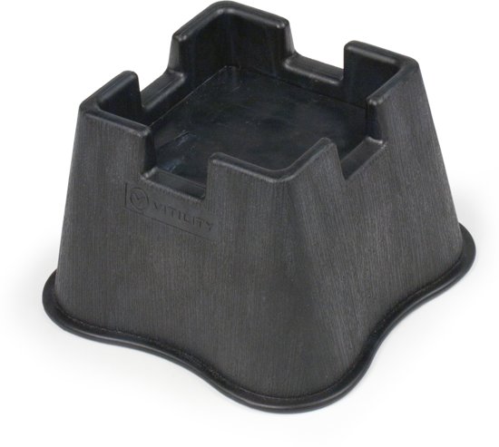 Meubelverhoger – klein – set van 4 stuks -De meubelverhoger is speciaal ontworpen voor het verhogen van bedden zodat het opstaan en in bed gaan makkelijker wordt. De meubelverhogers plaatst men onder de poten (max. 10 x 10 cm) van het bed en worden per set van vier geleverd. De meubelverhogers zijn voorzien van een antislip oppervlak op het gedeelte waarop de poten van het bed geplaatst worden. De meubelverhoger klein verhoogt het bed met 7 cm. Maximale draaggewicht 150 kg.Specificaties van de meubelverhogers klein:- Afmetingen poten: 10 x 10 cm- Afmetingen meubelverhoger: 15,5 x 15,5 x 7 cm- Gewicht: 178 gram- Kleur: Zwart- Hoeveelheid: 4 stuks