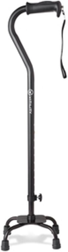 De Wandelstok Quadro heeft vier smalle pootjes die zorgen voor een breed draagvlak, waardoor men extra stabiliteit krijgt. Het ergonomische handvat ligt prettig in de hand en helpt schokken op te vangen. De wandelstok is in hoogte verstelbaar.