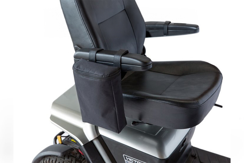 Deze tas bevestigt u aan een van uw armleuningen. Zo heeft u altijd uw sleutels, telefoon of portemonnee bij de hand. U kunt er zelfs voor kiezen om er een aan iedere kant te hangen. De tas past op iedere scootmobiel.